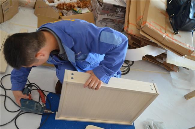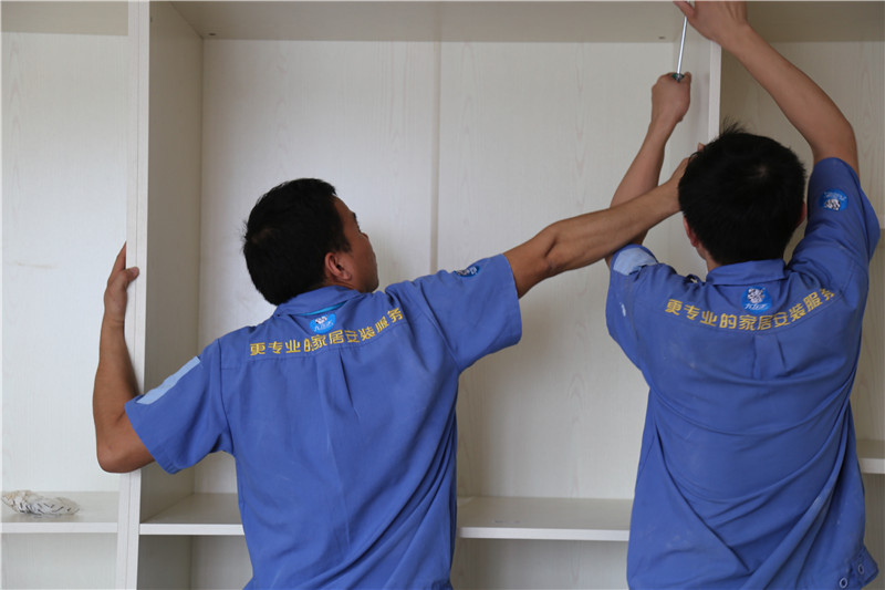 左右手家具安裝師傅現(xiàn)場安裝